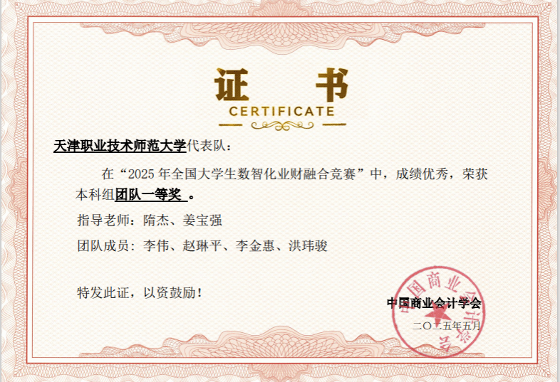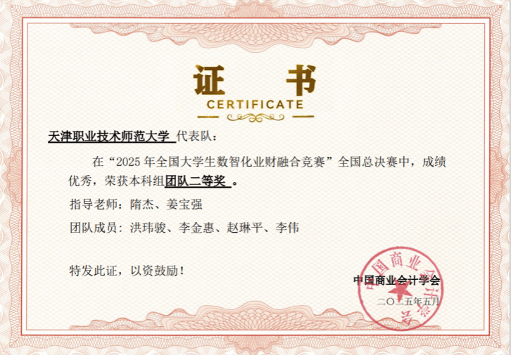 近日,由中国商业会计学会主办的“2025年全国老员工数智化业财融合竞赛”全国总决赛圆满落幕。在球王会教师隋杰、姜宝强的指导下,参赛选手李伟、赵琳平、李金惠、洪玮骏凭借扎实的专业知识和出色的团队协作能力,在大赛中脱颖而出,荣获区域赛本科组团队一等奖、全国总决赛团队二等奖。